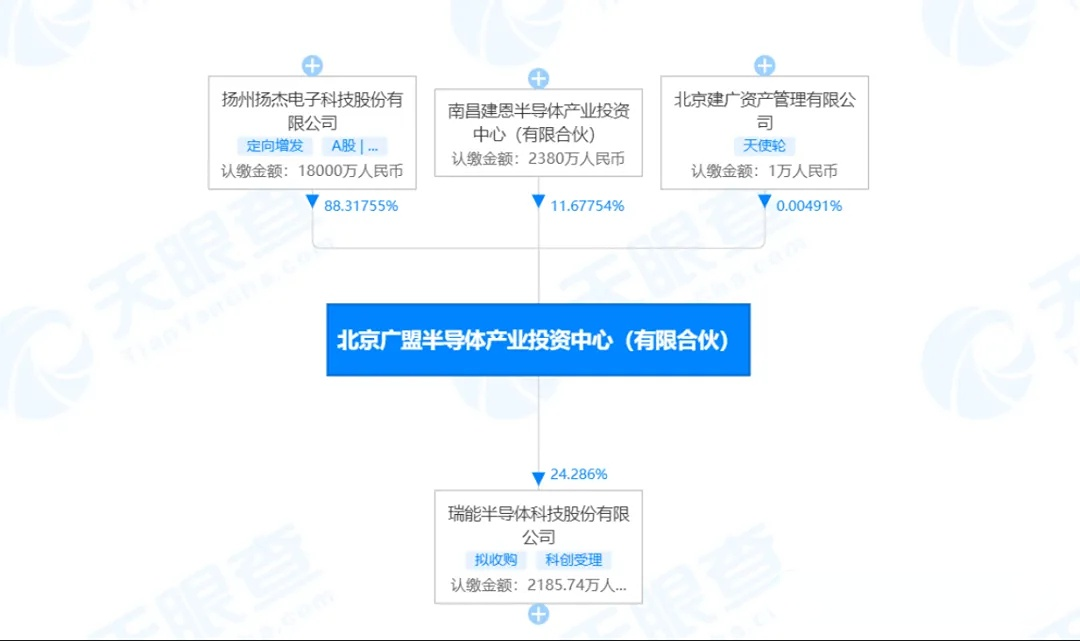 在最新的股权结构方面,目前瑞能半导仍为中资100%控股。其前三大股东南昌建恩、北京广盟、天津瑞芯分别持股约24.29%、24.29%、22.86%,均为私募基金;三者的执行事务合伙人均为建广资产或其关联方,使建广资产得以行使约71%表决权。